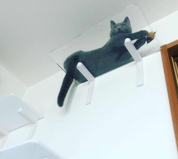 気分がハイになると、天井の三角コーナーに飛び乗っちゃうアメショーさくらたん。